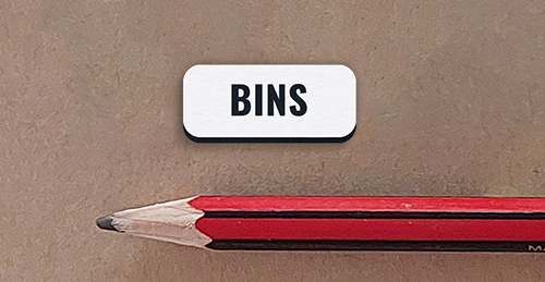 Bins. Light switch label.