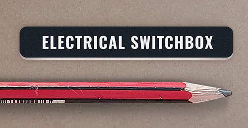 Electrical switchbox. Black with white text