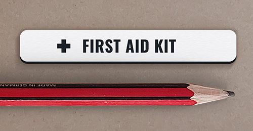 First aid kit. White with black text